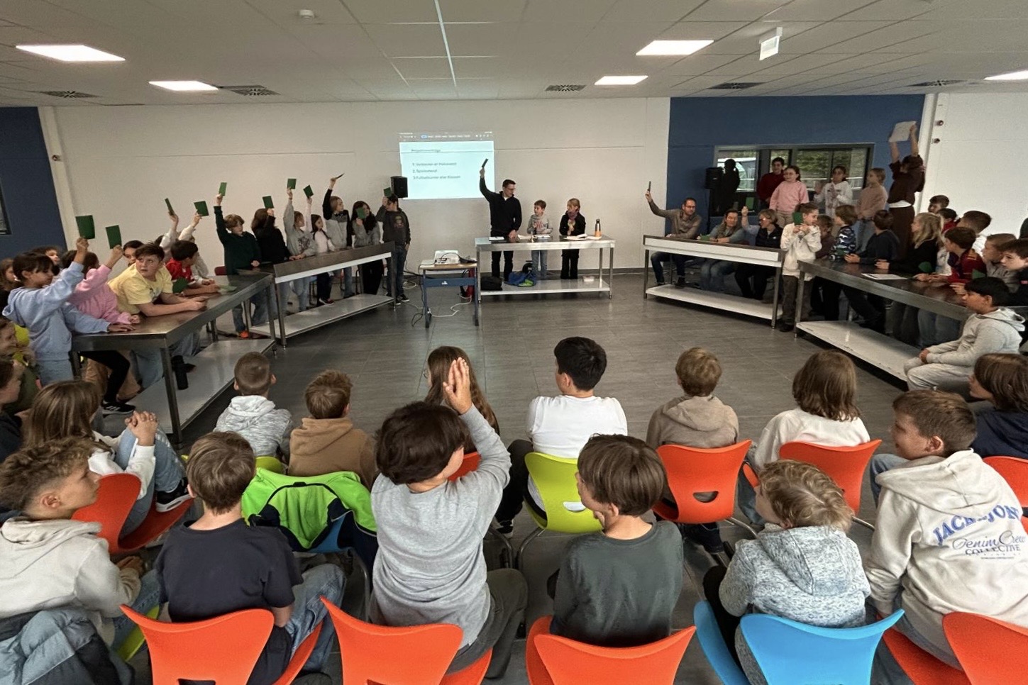 Am 9. Oktober kam zum ersten Mal das Schulparlament des Gymnasiums Rheinzabern zusammen. Im Foyer der Sporthalle versammelten sich alle Schülerinnen und Schüler, um gemeinsam über Ideen für das Schulleben zu beraten und abzustimmen. Jede Klasse war durch Delegierte vertreten, die ihre Projekte vorstellten und engagiert diskutierten.