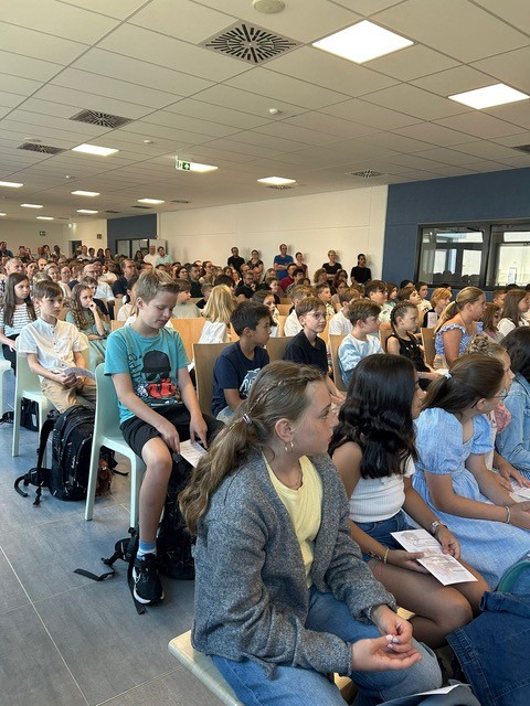 Am 18. August war es endlich soweit: Das Gymnasium Rheinzabern öffnete zum allerersten Mal seine Türen. Aufgeregte Kinder, stolze Eltern und das neue Kollegium füllten das Foyer der Sporthalle, wo die Schulgemeinschaft mit Musik, Reden und kleinen Willkommensgesten den Auftakt feierte.