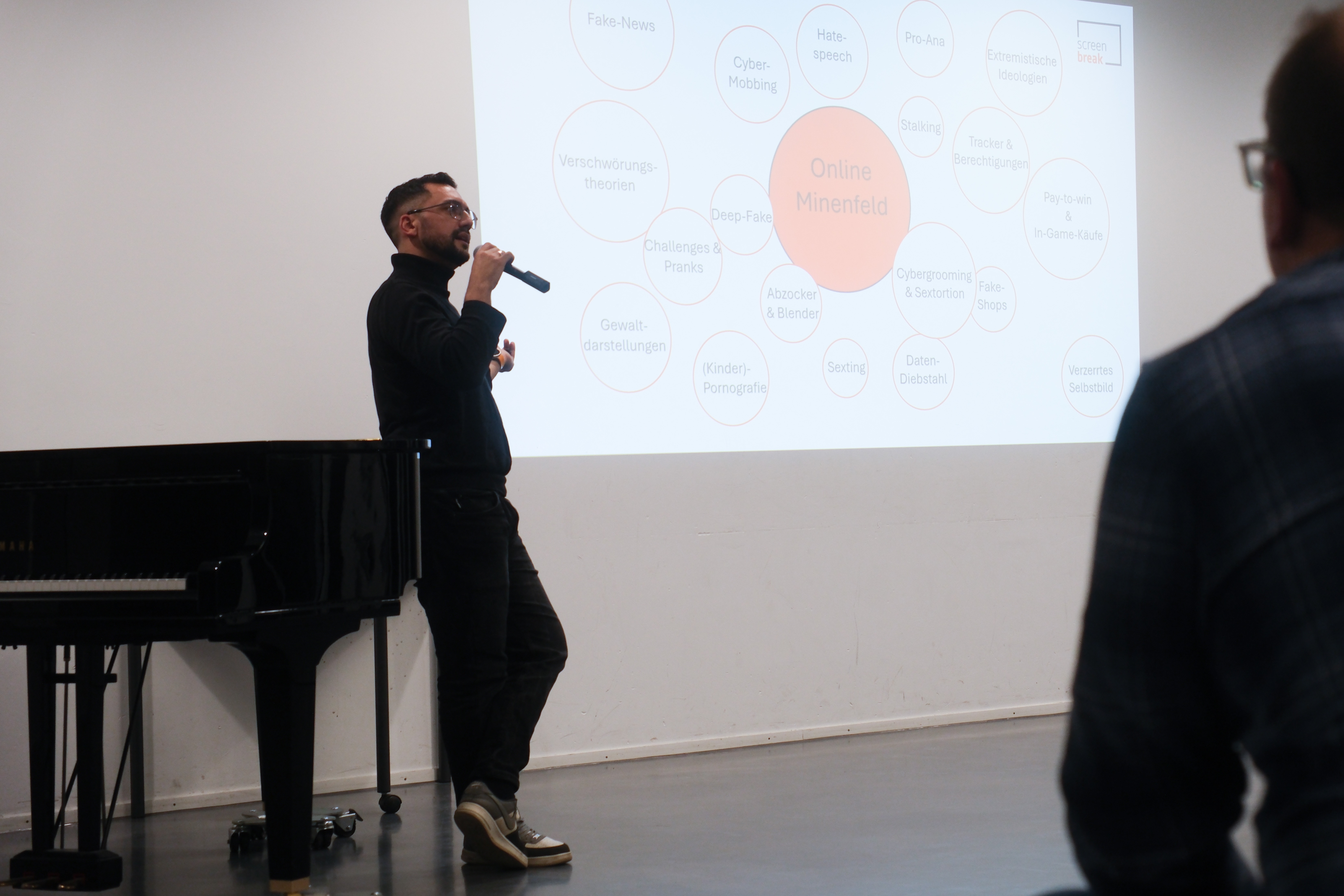 Am Dienstag, den 28. Oktober 2025, fand der erste Elternabend unserer Reihe „Was wir über digitale Medien im Alltag unserer Kinder wissen müssen“ statt. Zahlreiche Eltern der 5. Klassen folgten der Einladung von Schulsozialarbeiter Taner Yücel, der schon viele Jahre Schülerinnen, Schüler und deren Eltern in diesem Bereich berät.
